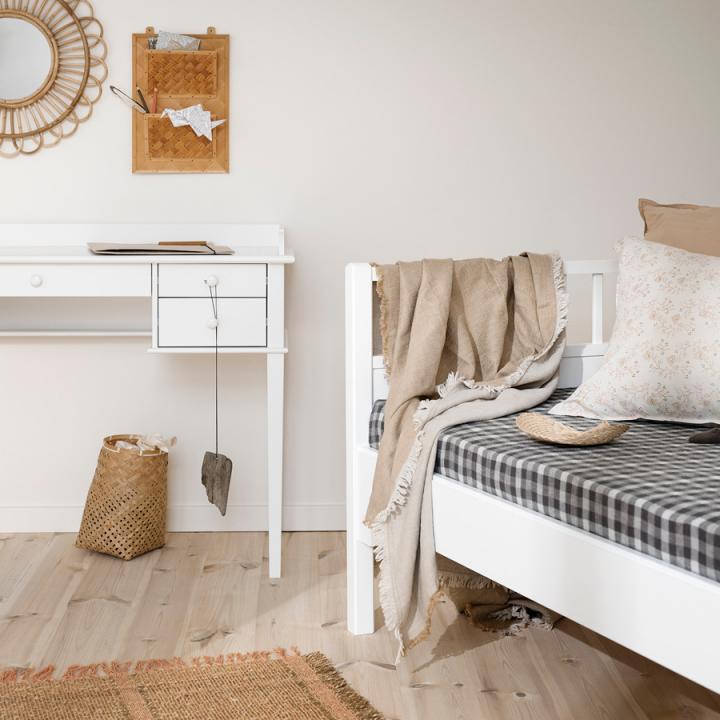 ArtikelbeschreibungDieser Schreibtisch aus der Seaside Collection von Oliver Furniture begeistert mit hübschen, nostalgischen Details, praktischen Schubladen zum Verstauen und einem schlanken, reduzierten Design, das wunderbar mit unterschiedlichen Interieurs harmoniert. Hier finden kleine und große Kids einen ansprechenden Platz, der zum Schreiben, Malen und Basteln einlädt. Ein ästhetisches und funktionales Möbel für höchste Ansprüche aus dem Hause Oliver Furniture, bei dessen Herstellung strenge Richtlinien für Nachhaltigkeit, Umweltschutz und Ethik eingehalten werden. Für die Kleinen ist dieser Schreibtisch von Oliver Furniture auch als Junior-Schreibtisch erhältlich. AbmessungenB 116 x T 50 x H 74 cmMaterialinfoMassivholz und MDF, seidenmatt weiß lackiertHinweisVersandkostenfreie Lieferung innerhalb DeutschlandsLieferumfangSchreibtisch ohne Stuhl und Dekoration